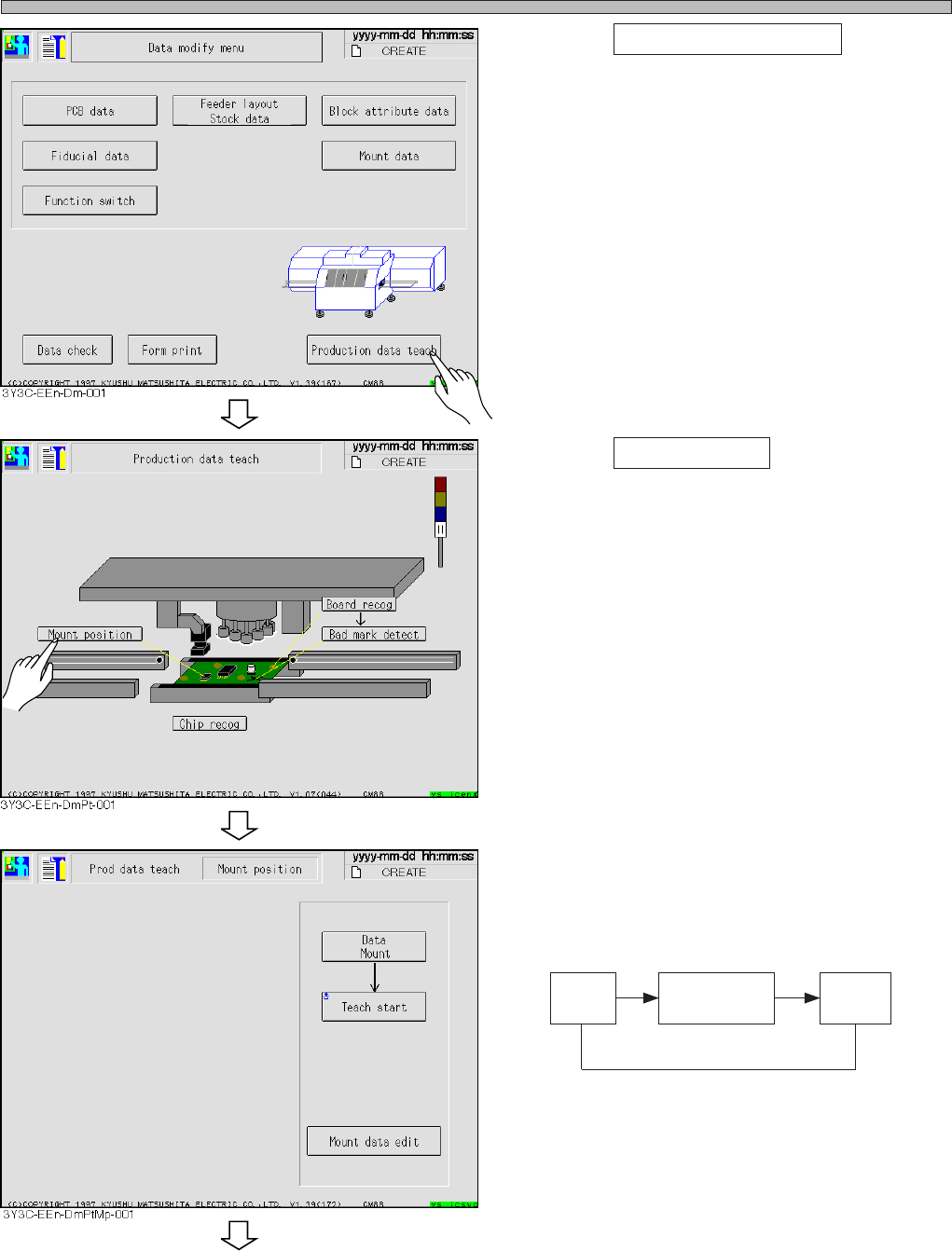 • Production data teaching screen appears.