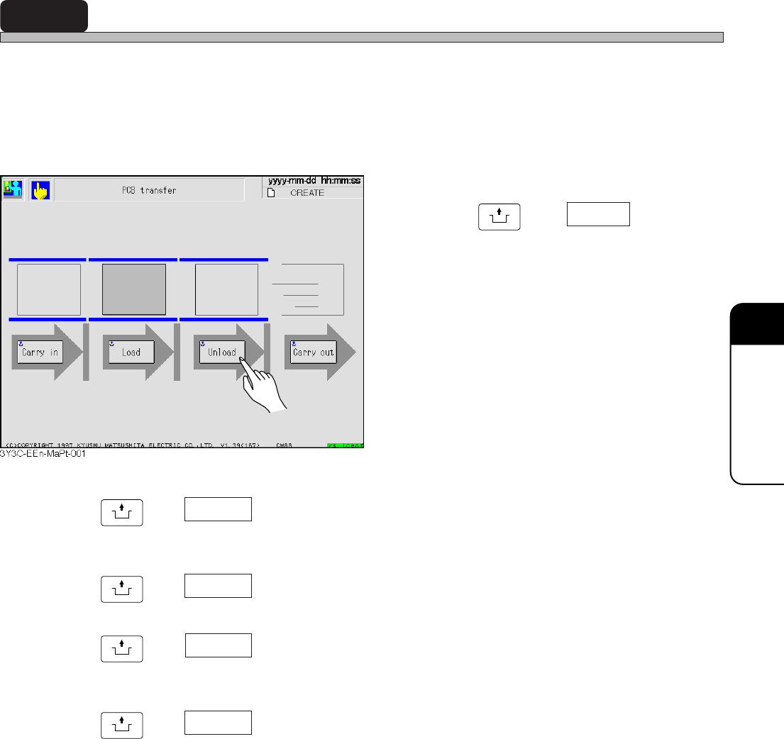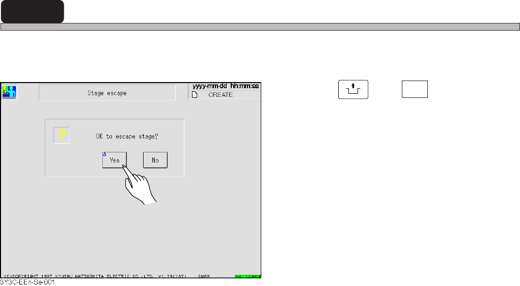 Page 7-4 3Y3C-E-EMD07-A01-00 7-3 Stage Escape This is the function to move A and B stages to each end (origin position) of a feeder drive axis. Use this for the maintenance at the rear side of machine. 1. Press UNLOCK an…