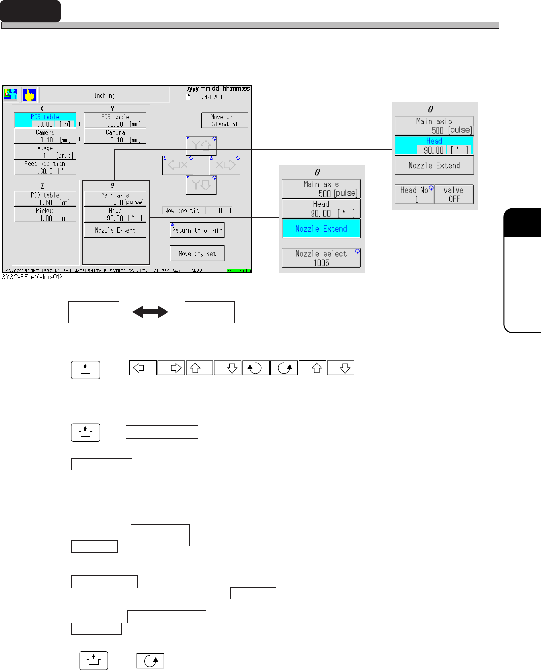 and makes the main axis (main axis) move by step, and “Nozzle extension” is