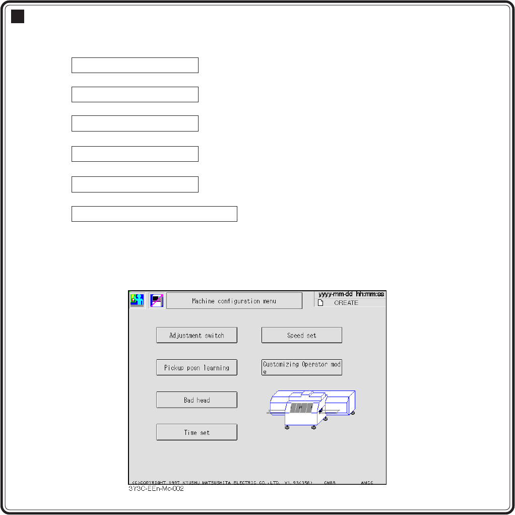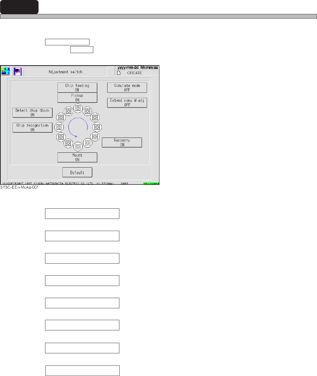 Page 8-2 3Y3C-E-EMD08-A01-00 8-1 Adjustment Switch The condition of producing can be temporally changed for adjustment. The figure below is the main axis and transfer head viewed from the top. Usually , all items except …