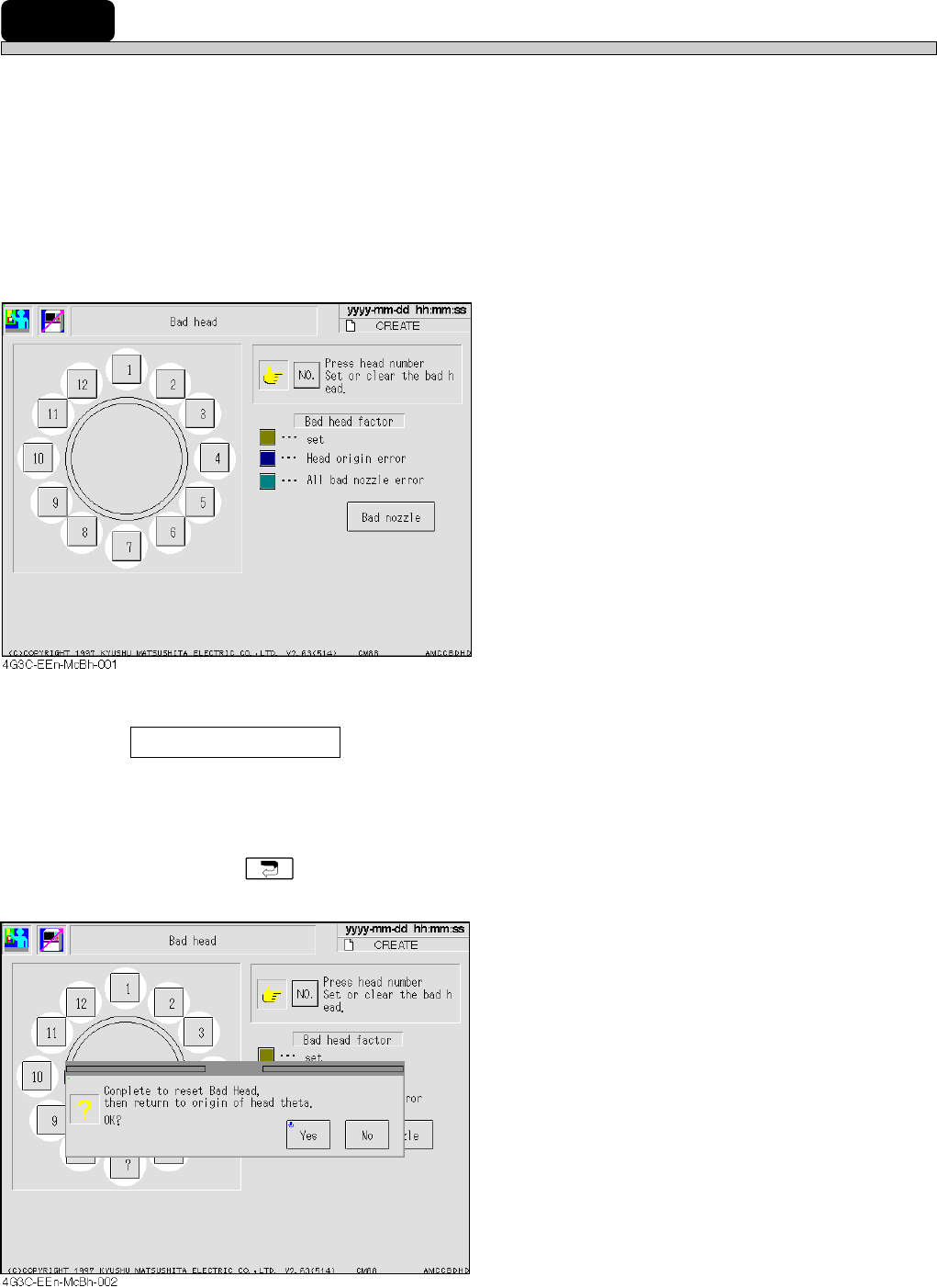 For the bad head automatically occurred during producing, that [No.] button is colored correspond-