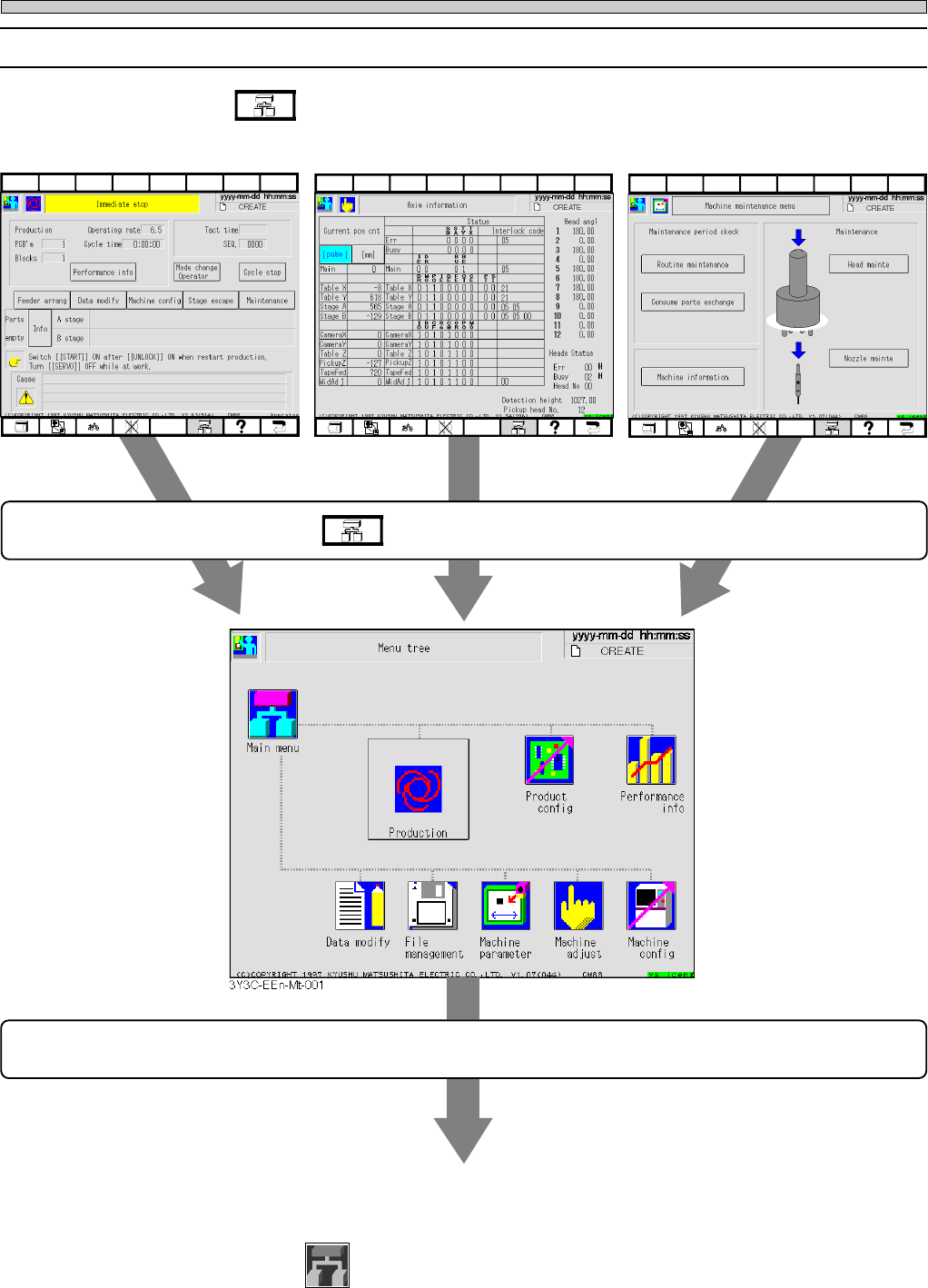Pressing the key on any screen displays the following figure of menu. Pressing the icon to