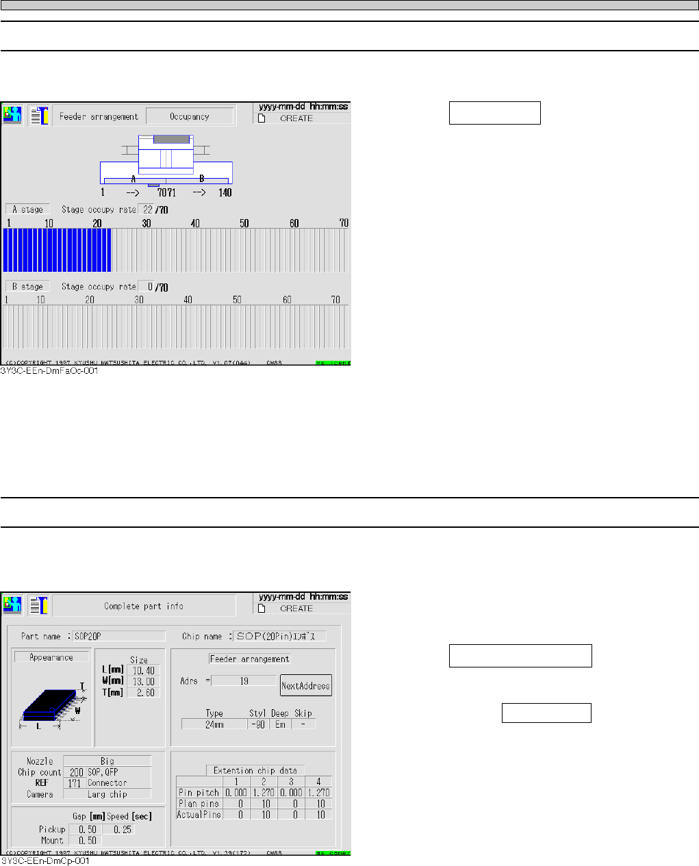 Page 4-7 DA T A MODIFICA TION 4 4-4 Feeder Layout / Stock Data Feeder layout and stock data are indicated together , and feeder state arranged on the stage is checked. The chip data for use is also checked and corrected.…