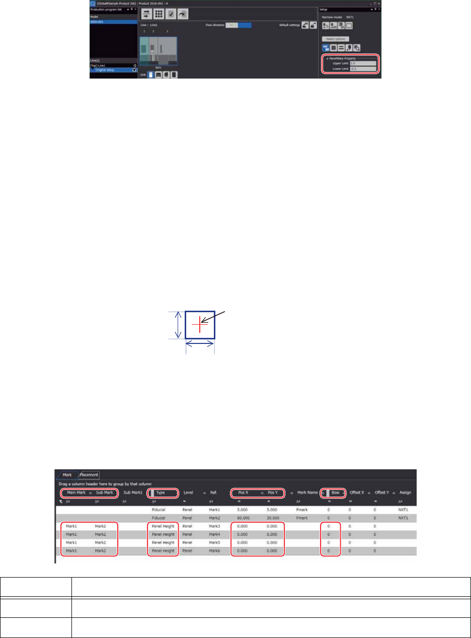 • 主定位点和副定位点不能参照不同的子电路板号码的基准定位点。