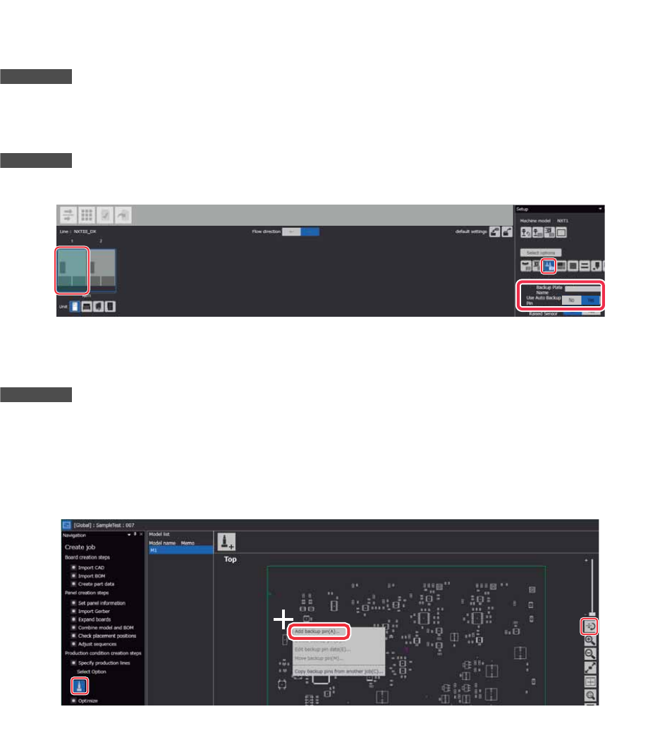 4. 在 [Navigation] 画面的 [ 生产条件创建步骤 ] 上单击 [BackupPin 编辑 ] 图标。