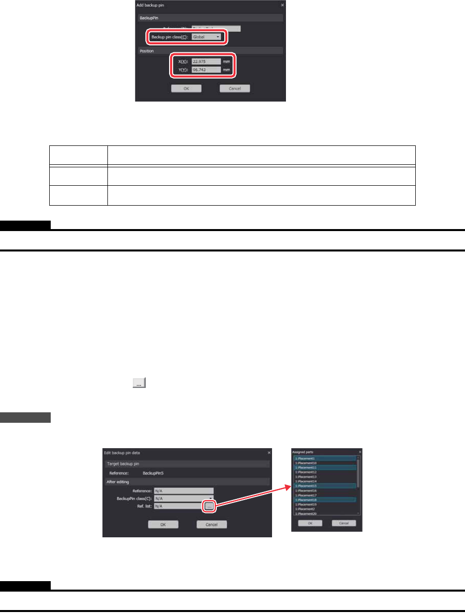 2. Job 编制器 PRG-NXTSN-006S0 108 NXT 系列 编程手册 Nexim 编 8. 在 [Backup Pin Cl ass] 中设定支撑销的 Level。详细内容参照下表。 注意 设定为 Local Backup 时,需要设定关于 Backup Pin 的元件 Reference No。详细内容请参照步骤 11.。 9. 想要变更初始设定的参考名称时 ,请单击 [Reference ] 文本框内,然后指定新的名…