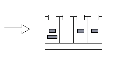 • 上图中,在模组 1 贴装下元件时,可以贴装上元件的模组是模组 1,3,4。