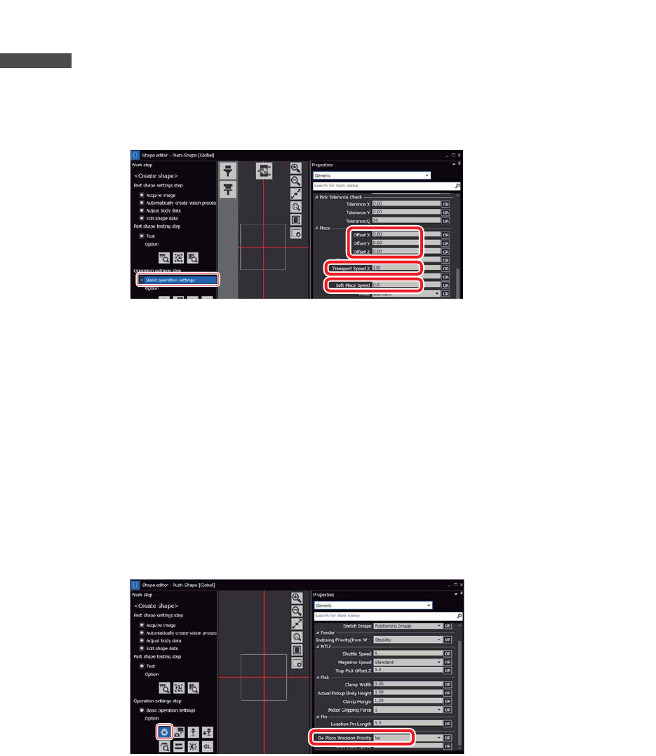 a. 在 [ 外形编辑器 ] 上选择 [ 动作设定步骤 ] 的 [ 基本动作设定 ] 后,在 [ 属性 ] 区域的 [Place] 上设定