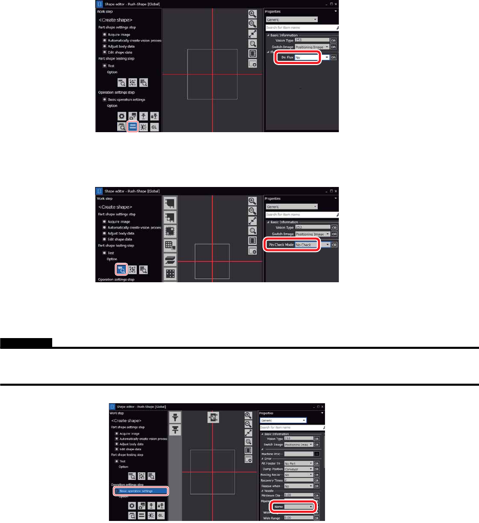 PRG-NXTSN-006S0 2. Job 编制器 NXT 系列 编程手册 Nexim 编 119 j. 在 [ 外形编辑器 ] 的 [ 元件形状测试步骤 ] 的 [ 选项 ] 上单击 [Pin Che ck] 图标后,在 [ 属性 ] 区域上 将 [Pin Check]-[Pin Check Mode] 设定为 “No Check”。 6. 设定贴装元件压下时使用的吸嘴 。 在 [ 外形编辑器 ] 上选择 [ 动作设定步骤 ] 的 …