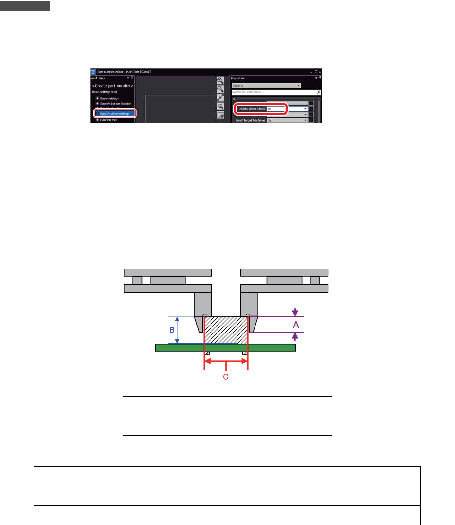 进行贴装元件压下动作时,不能使用吸取元件的正反判定功能。请将元件号码的 [ 基本设定步骤 ]-[ 其他的