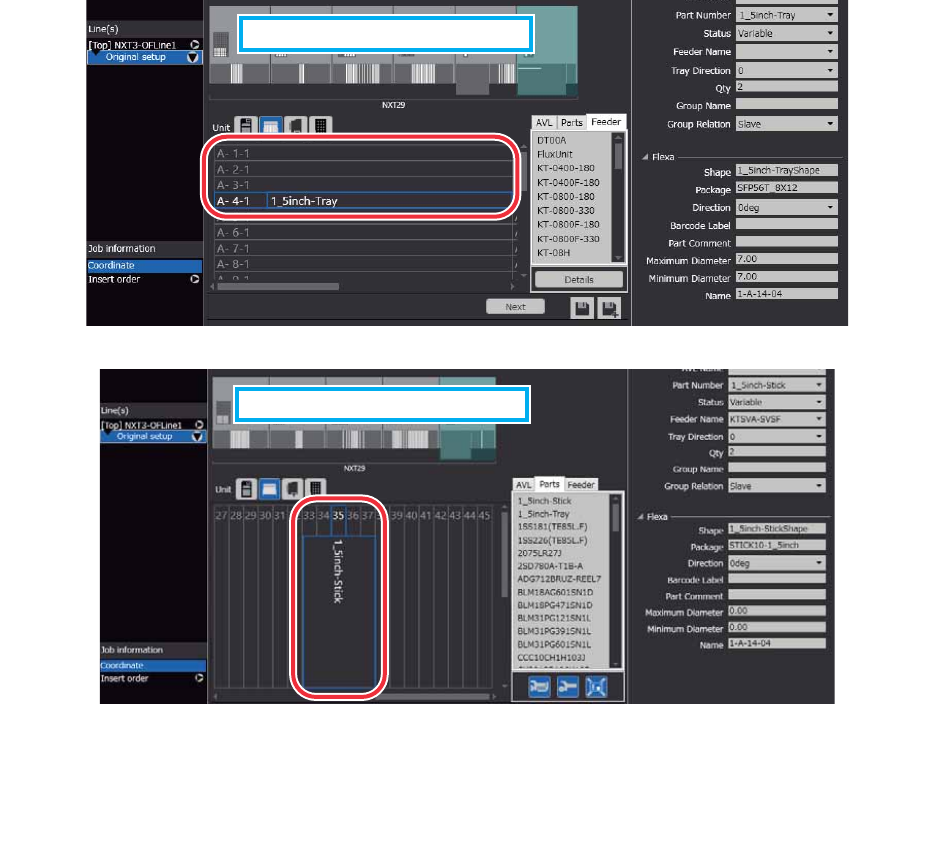 7. 对选择的模组供应单元设定对应 1.5 英寸的料盘单元 -LT 或者管装供料器。
