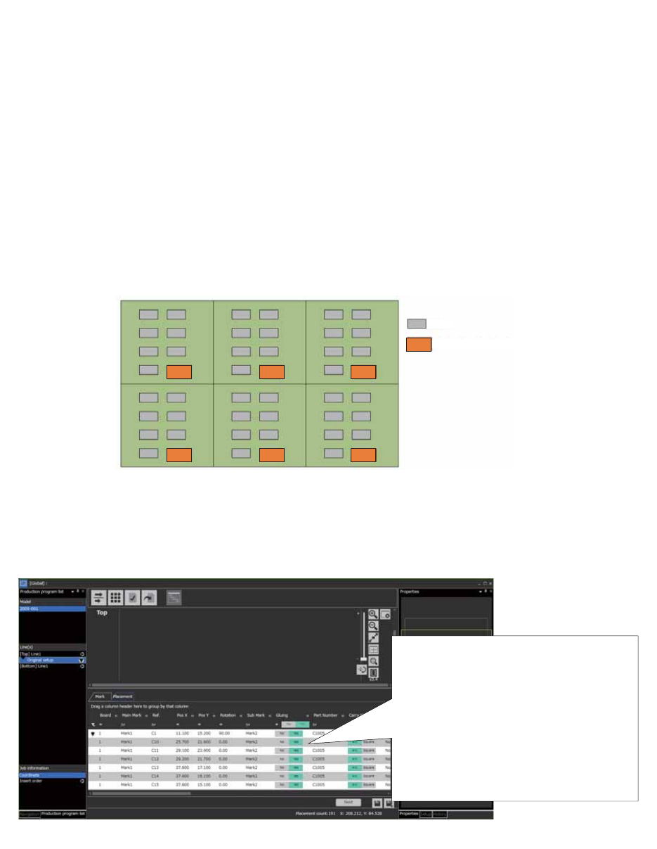 2. 请将使用动态 BOX 生产进行贴装的所有元件分配到参照点上。分配时的子电路板号码和参照点的组合