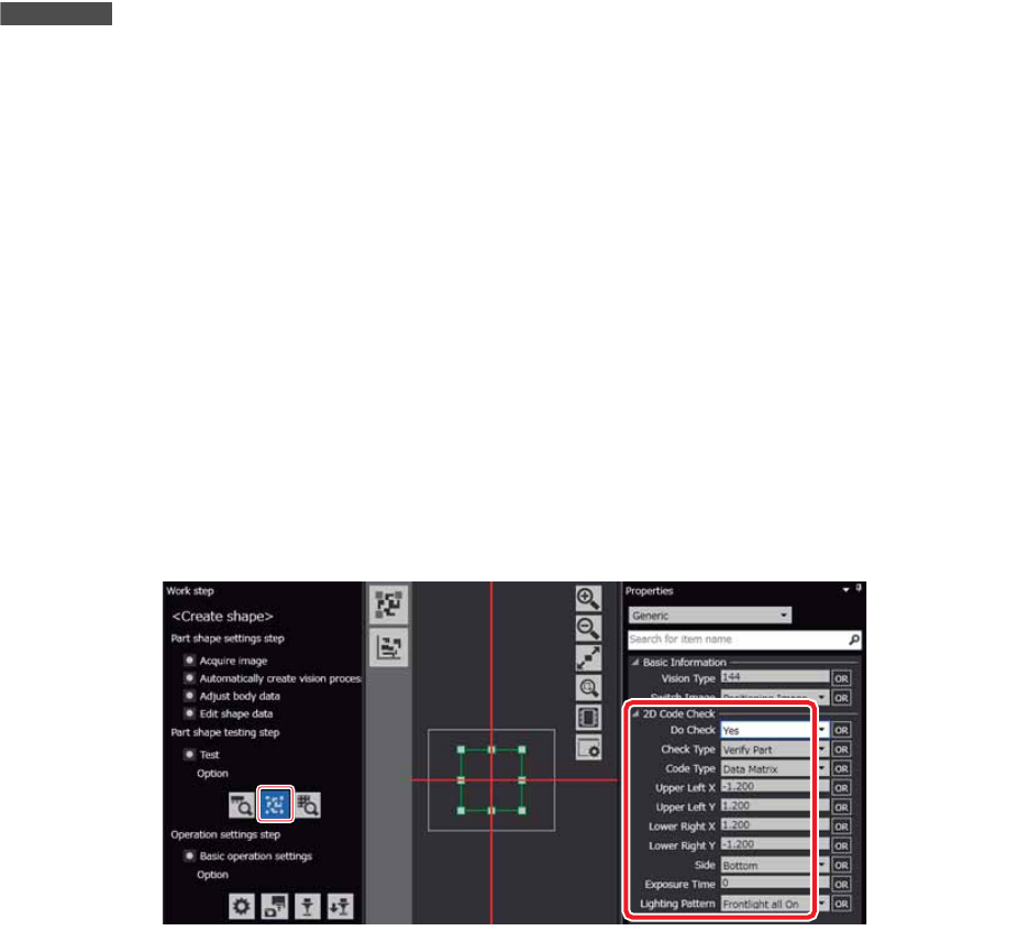 2. 请单击 [ 元件形状测试步骤 ] 的 [ 选项 ] 的 [2D Code Check] 图标。