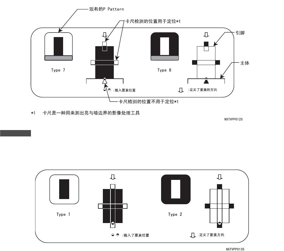 3. 元件数据 PRG-NXTSN-006S0 216 NXT 系列 编程手册 Nexim 编 3.5 关于 P Pattern 指定引脚的显示方式以及使用 引脚的哪个部分的信息进行元件的位 置检出。需要注意,根据所选择的数值, 进行输入的坐标位置会不同。 3.5.1 可以使用的 P Pattern 以下总结可以使用的 P Pattern。 P Pattern 元件举例 说明 引脚显示 1 Bump parts 白色主体元件 2B u …