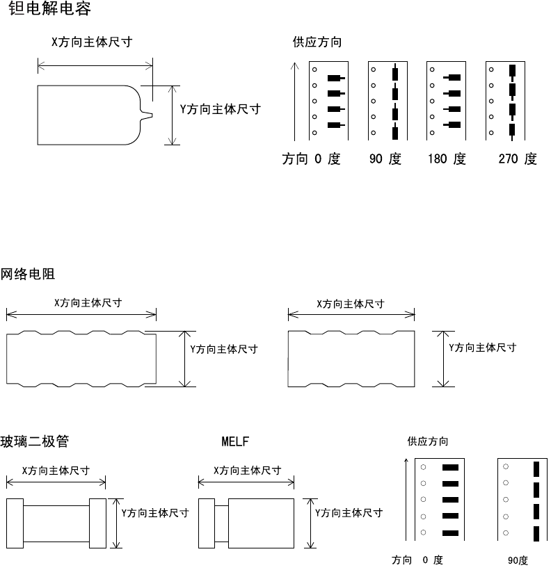 必须包含在元件主体尺寸中。使用附加极性检查时,就必须在元件数据中正确地输入供应方向。元件基准