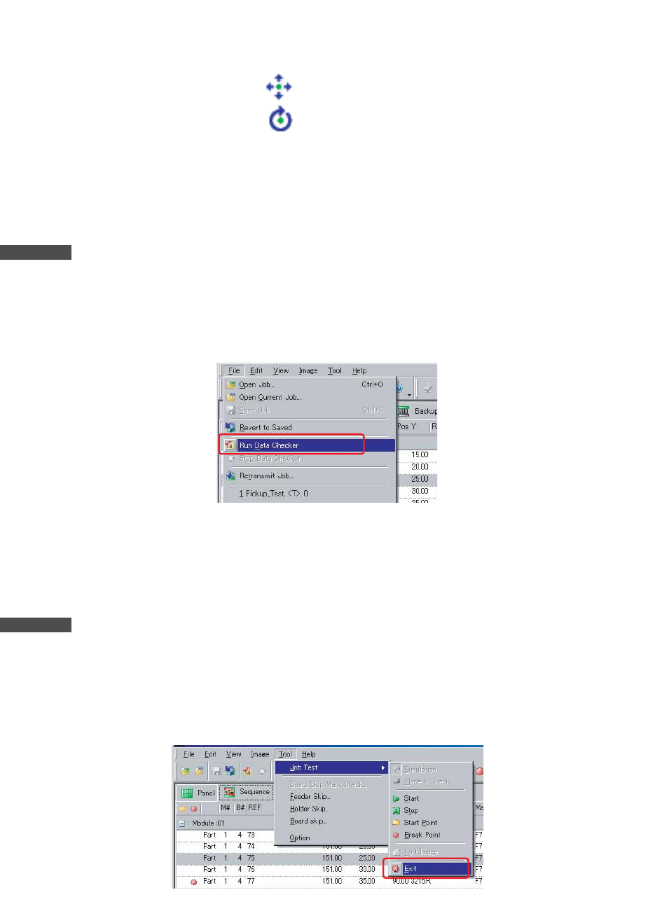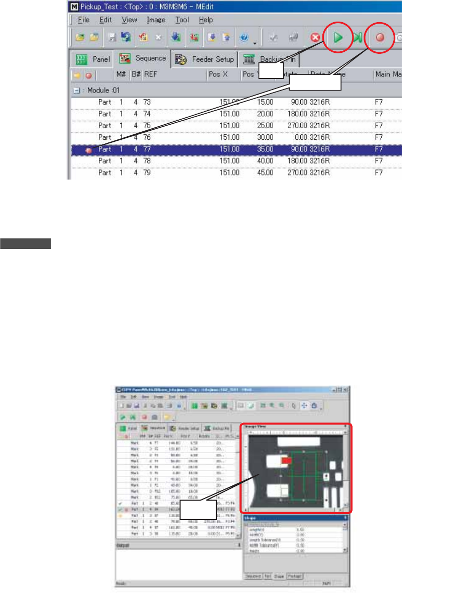PRG-NXTSN-006S0 5. 其他的 应用 NXT 系列 编程手册 Nexim 编 279 检查元件的位置和方向 8. 从 MEdit 的列表中选择将要进行检查的顺序, 单击中断点按钮 (红色圆形 按钮) 。这样用以确认将要 进行检查的顺序并且顺序的开头 一列将显示红色圆形图标。 备注 可以指定多个中断点。中断点的顺序停止并且所获取的图像发送到 MEdit 用以确认。非中断点的顺序图像是不会送到 MEdit 中进行确认的, 除非…