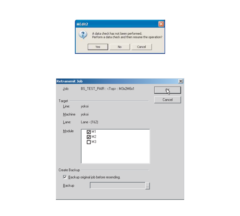 19. 单击 [Yes] 执行数据检查。数据检查完成之后,将显示 [Retransmit Job] 对话框。