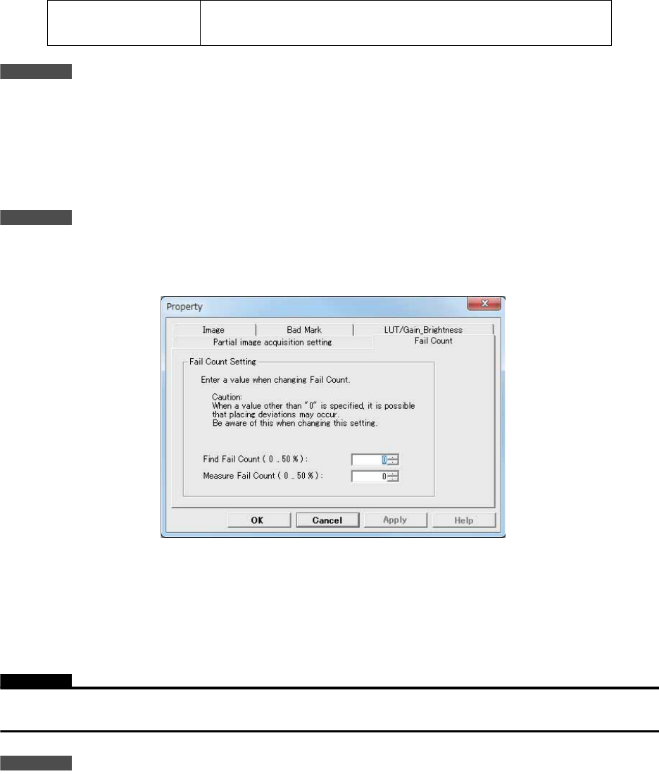 • Find Fail Count 是对于带 ” 三角 ” 查找线的允许影像识别的失败比率的设定项目。