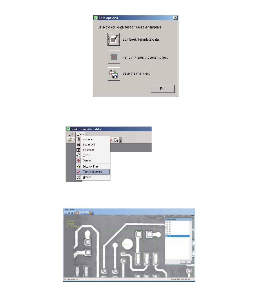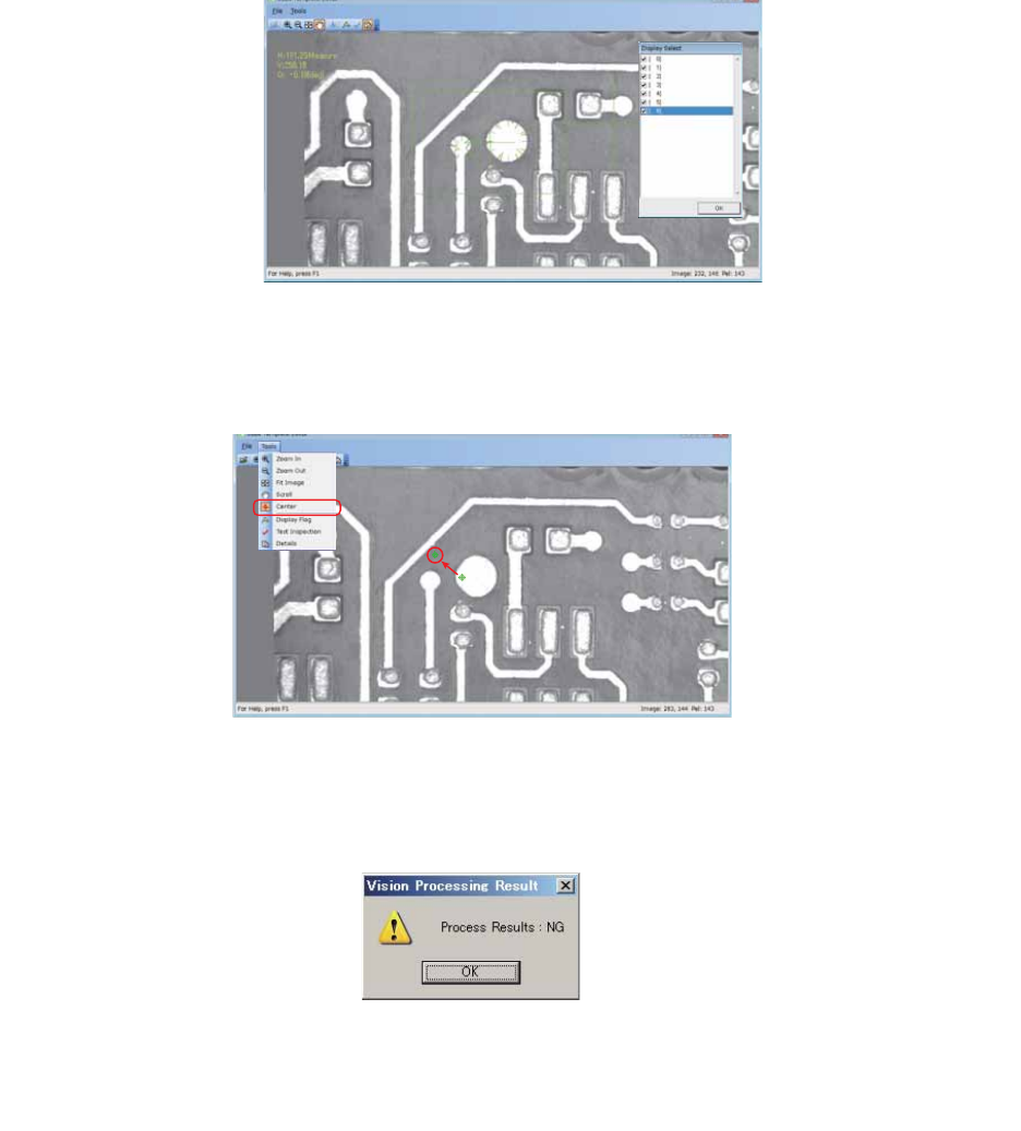 PRG-NXTSN-006S0 5. 其他的 应用 NXT 系列 编程手册 Nexim 编 309 b. 可在显示选择对话框内,通 过选择检查 BOX,参照详细的影像处理结果。 3. 请移动读取区域的中心 (Center Marker) ,反复进行影像处理试验。 a. 选择菜单栏的 [ 工具 ] - [ 中心的设定 ] 后,将 Center Mar ker 拖放到任意位置。 b. 请选择菜单栏的 「工具」- 「实行试验处理」 。 4. …