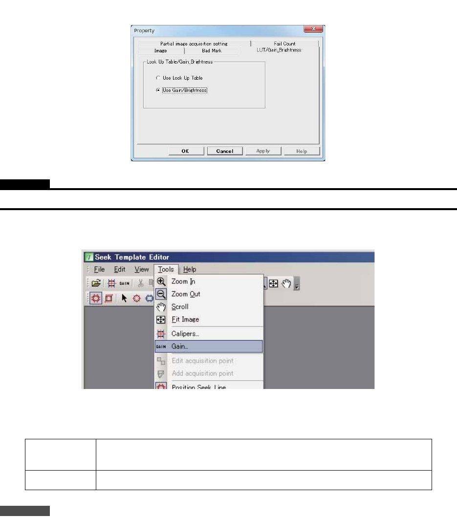 Gain: 数值高时可以使对象影像明亮。因为同时也会使杂讯增幅,请一点点地进行