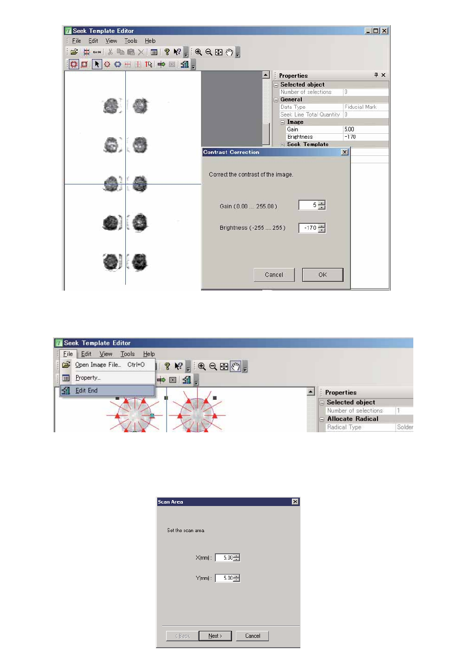 7. 请在对比度补正对话框内调整 Gain 以及 Brightness,使对象影像的边界清晰。