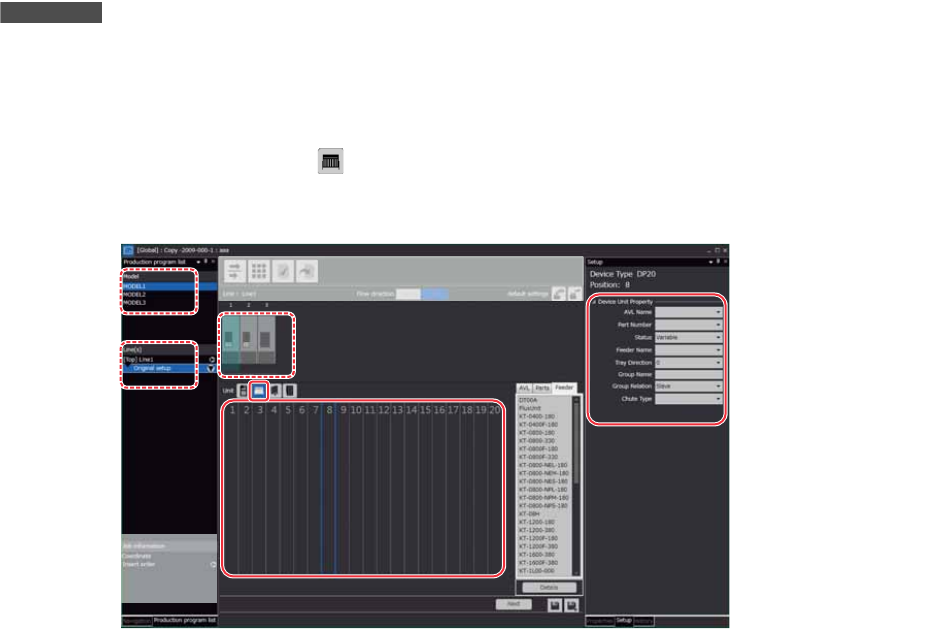 2. 选择料槽后,设定 [Setup] 区域的 [Device Unit Property] 的各个项目。