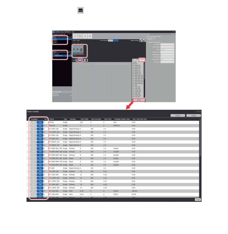 3. 在目的供料器的 [Available] 栏内设定供料器是否可以使用。可以在此机器上使用的供料器设定为