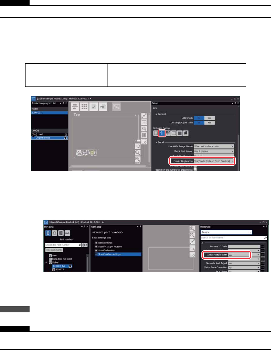 即使 [Feeder Duplication] 设定为 “Yes” 时,[Allow Multiple Slots] 设定为 “No” 的元件也不成为分割对象。