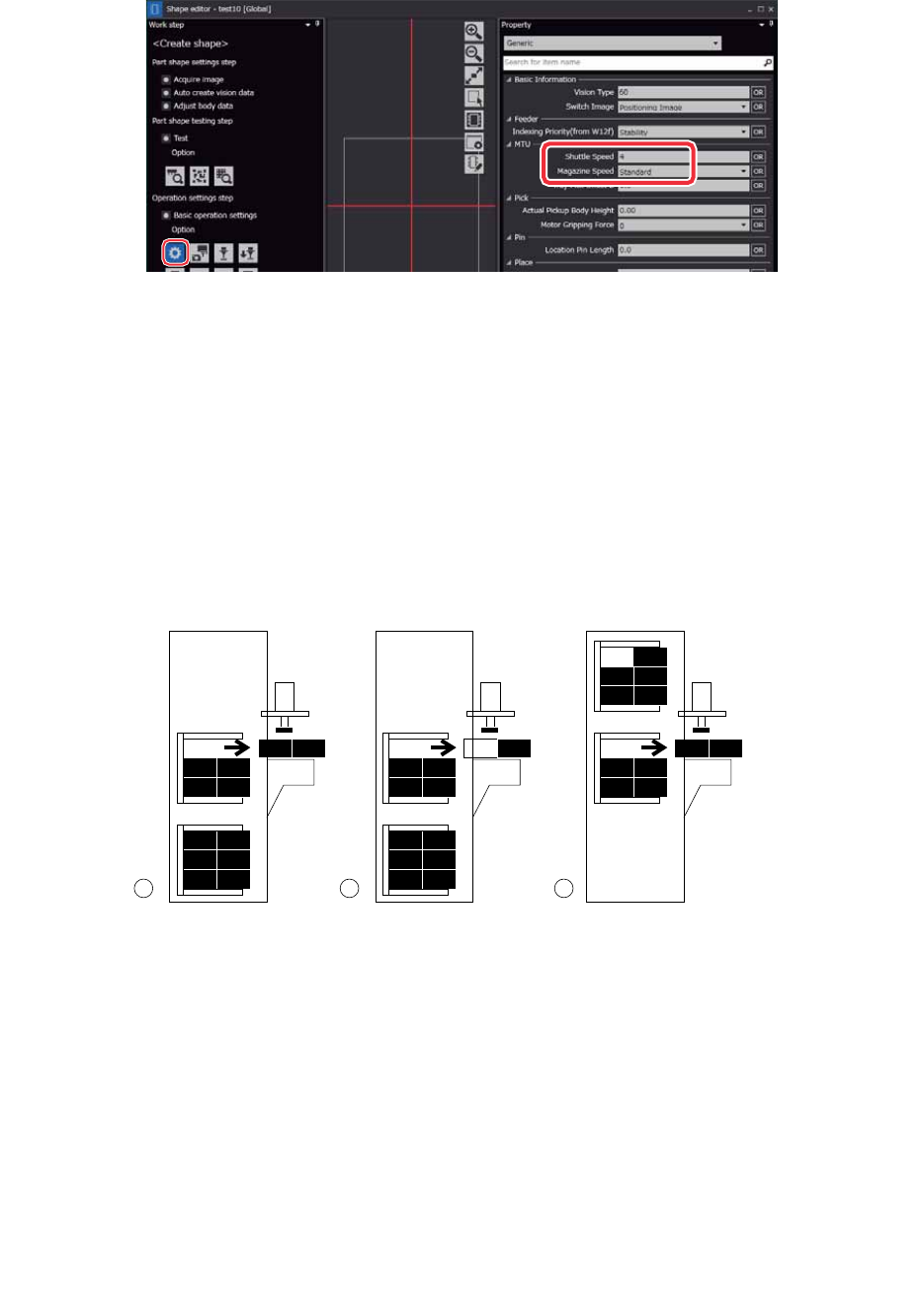 3. 在 [ 单元 ] 上单击 [Part Supply Unit] 图标后,进行侧的选择。