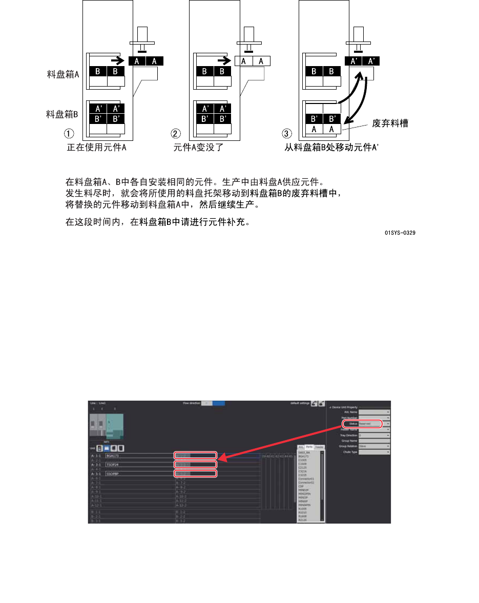 2 个料盘箱安装同样的元件,一个料盘箱使用于生产,另一个料盘箱使用于补料。发生料尽时,通过补料
