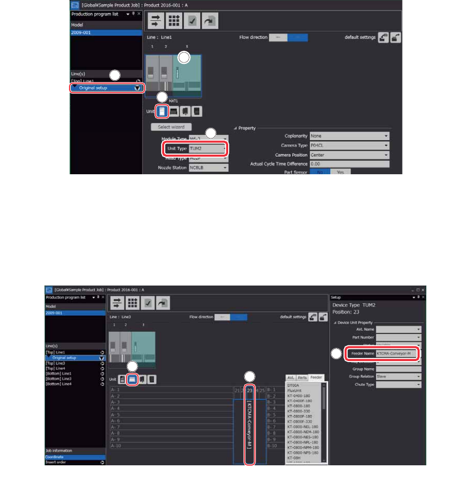 c. 在 [Setup] 区域的 [Device Unit Property]-[Feeder Name] 内设定 “KTCMA-Conveyor-M”。