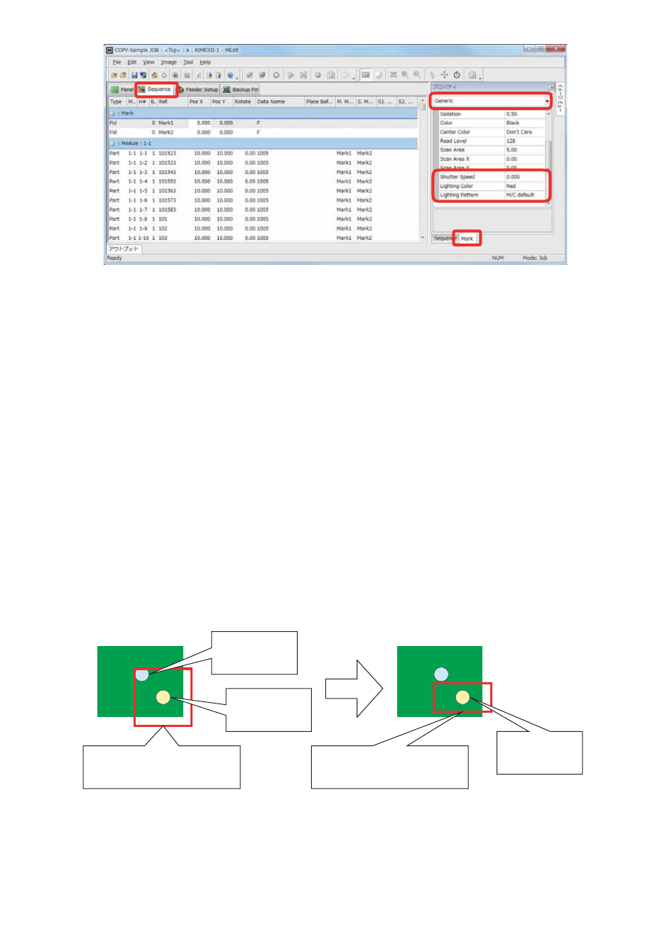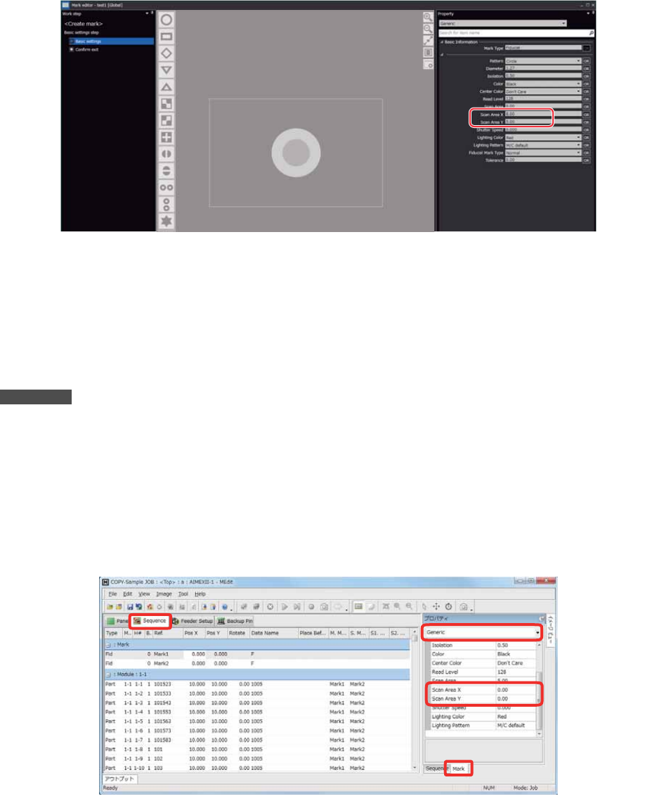 PRG-NXTSN-006S0 2. Job 编制器 NXT 系列 编程手册 Nexim 编 67 3. 单击 MEdit 右下面 Mark,进行以下设定。 防止误识别的读取条件设定 说明防止 F 定位点误识别的设定。 设定扫描区域 通过避开在扫描区域内设定相 似的定位点,可以防止误识别。 Job 的设定方法 请在 Nexim 或 MEdit 设定以下的 Job 项目。 设定 Nexi m 1. 在 [ 定位点数据 ] 画面上单击 [ …