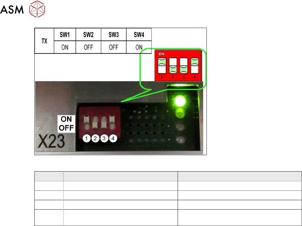 8 Control and Communication 8.8 FCU 126 Technical Training FSE SIPLACE TX-Series 01/2018 Switch settings ON OFF SW1 Test mode for reject bins deactivated Test mode for reject bins activated SW2 60 Fold FCU 40 Fold FCU SW…