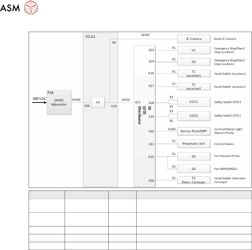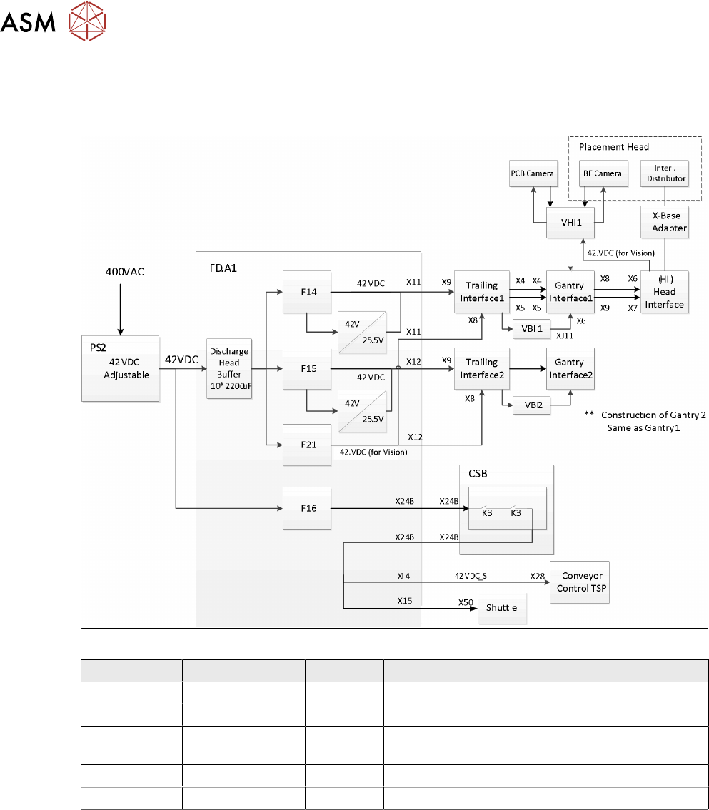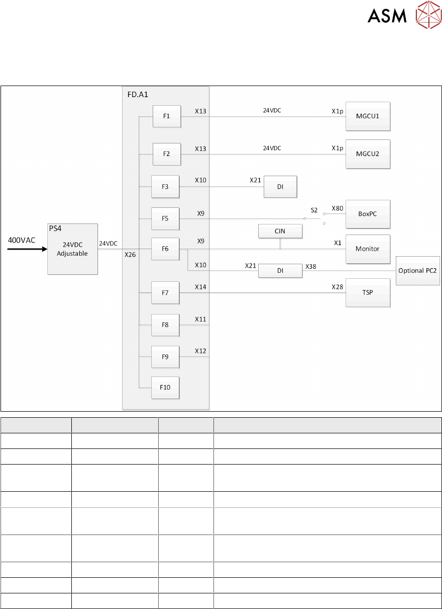7 Power Supply 7.3 Voltage Overview Block diagrams Technical Training FSE SIPLACE TX-Series 01/2018 93 7.3.5 24 VDC Switched and Unswitched Fuses 1-3 and 5 -10 Voltage Type Fuse Usage 24 VDC Unswitched F1 Voltage MGCU1 2…