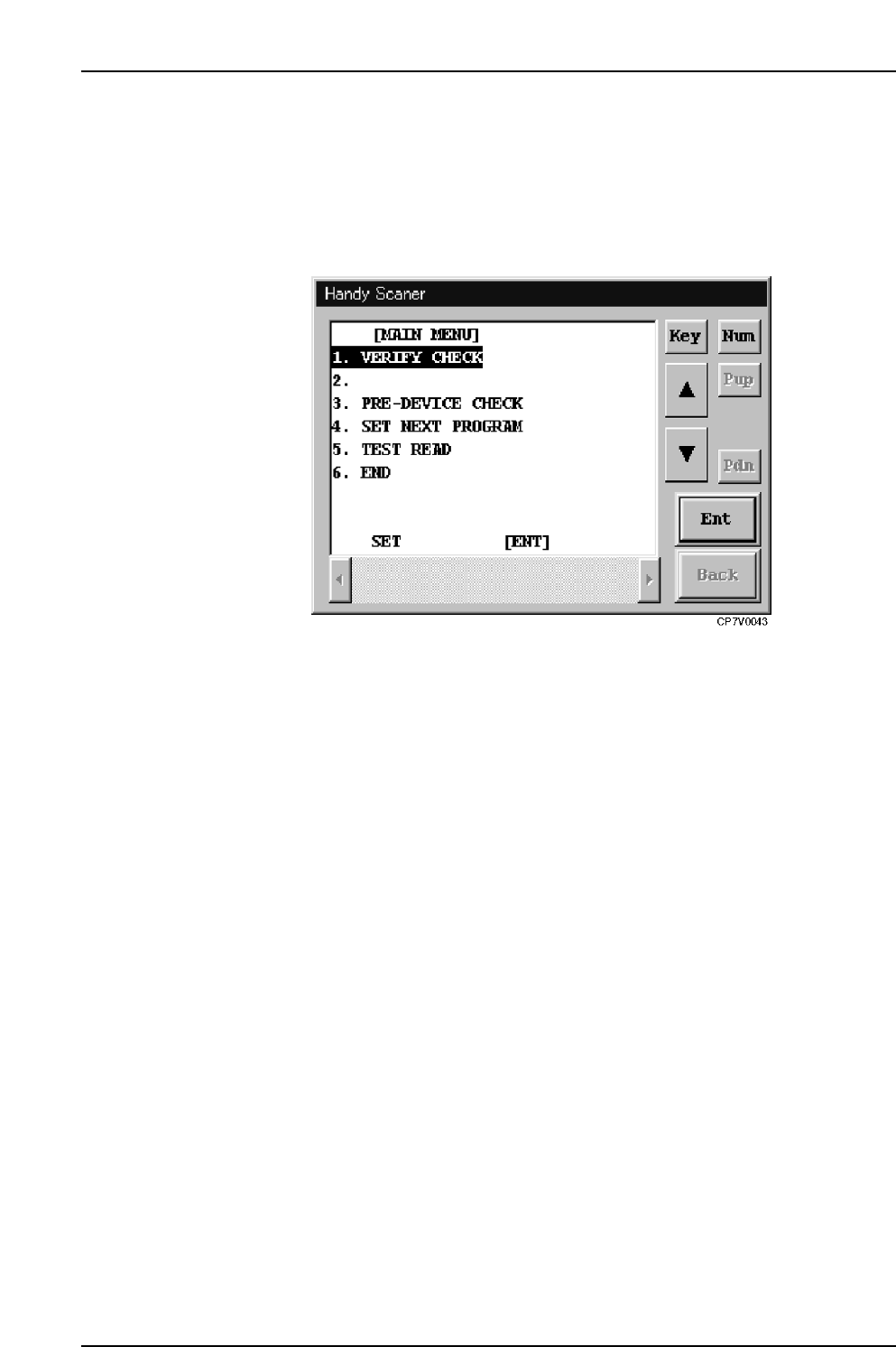 check by reading the “1” barcode with the [Main Menu] displayed in the Handy Scanner