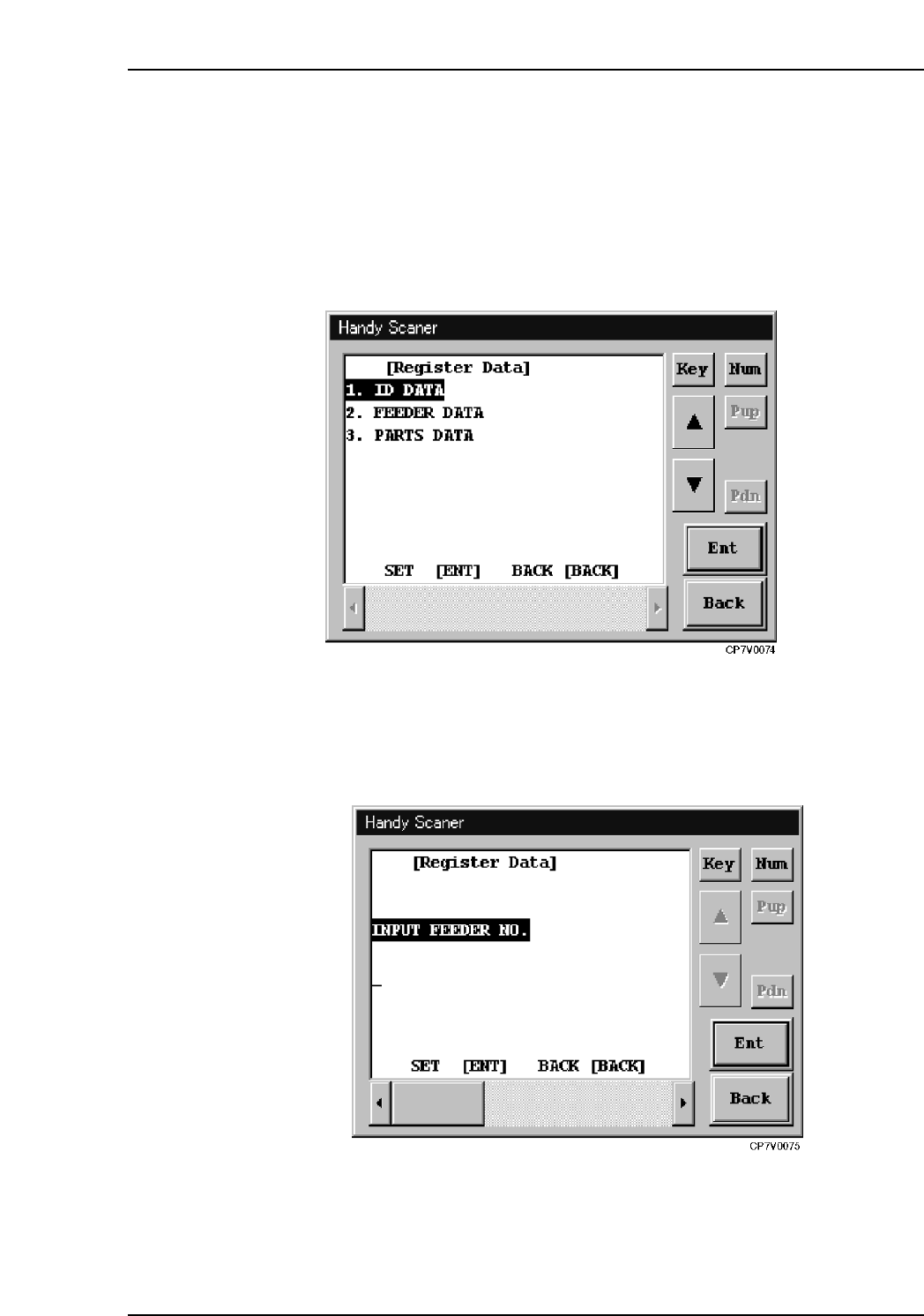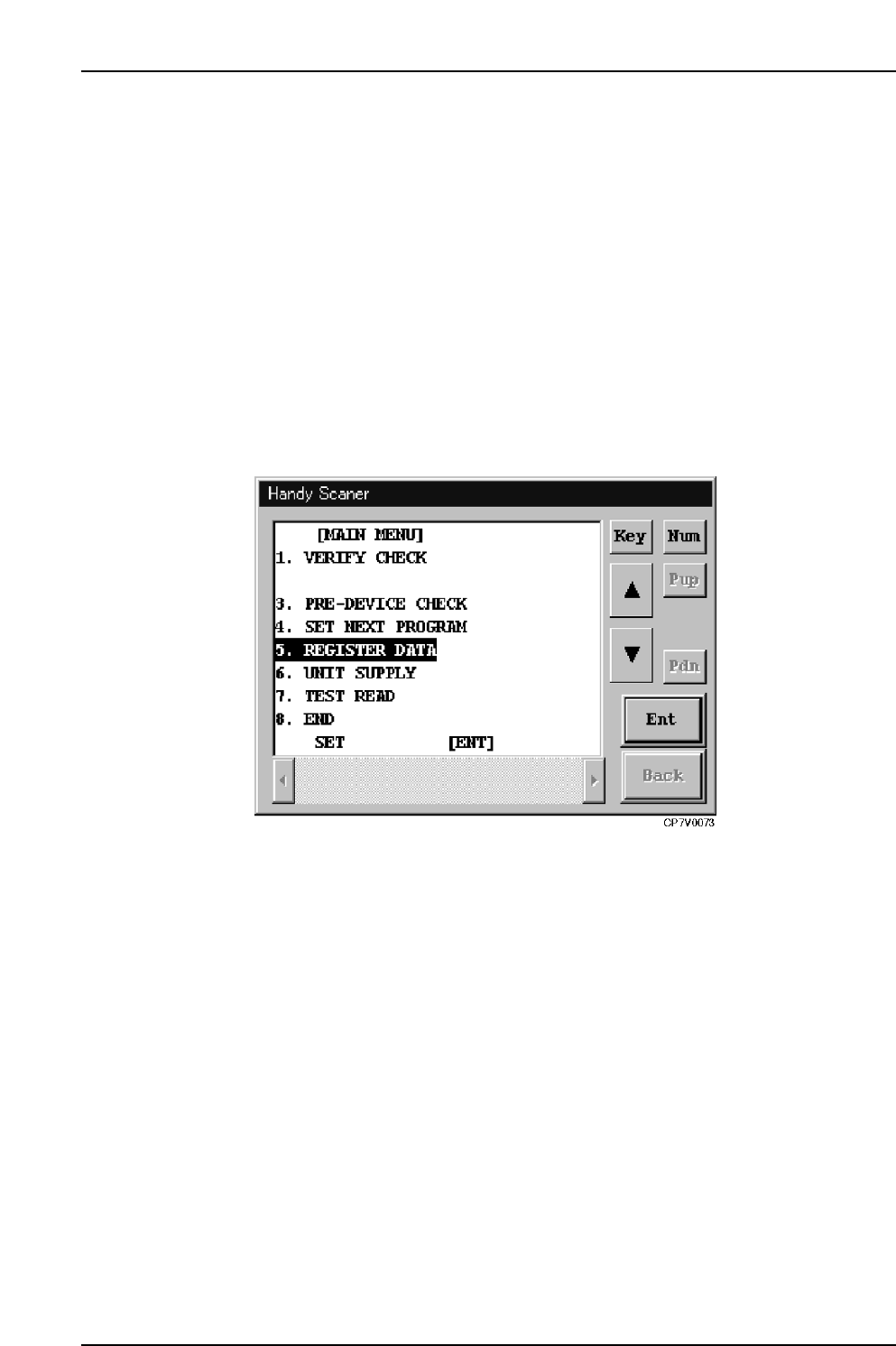 Handy Scanner’s Registration Data Selection Screen