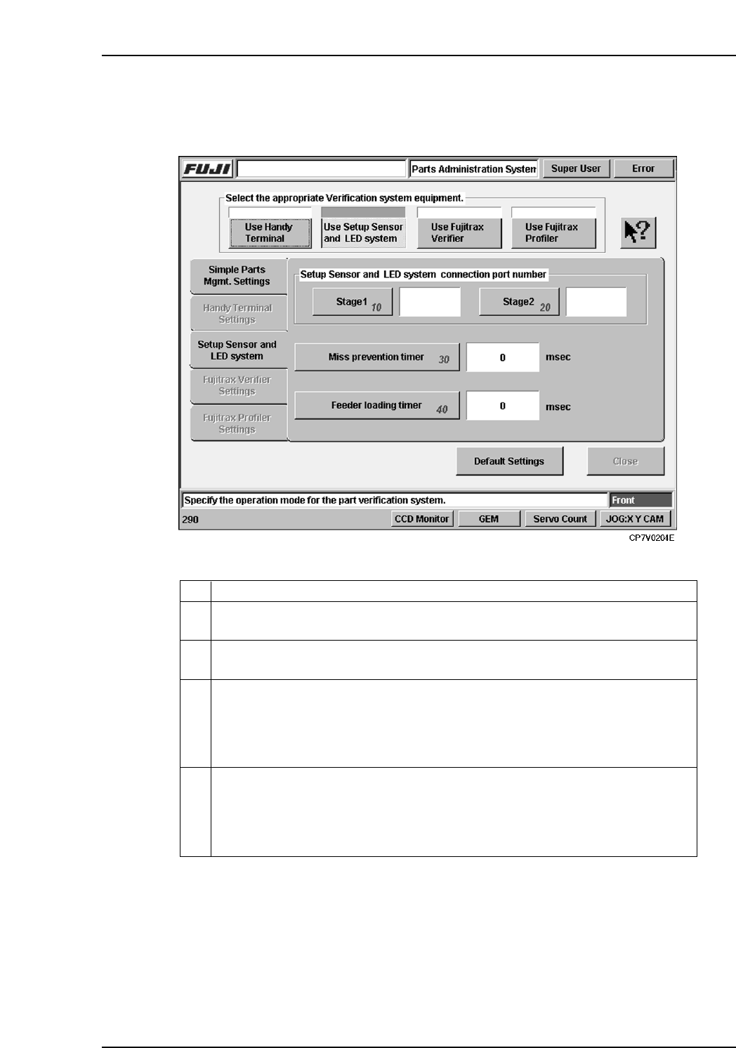 6. Settings Edition 2.0 29 CP-7-series V erification System Instruction Manual 6.4 Setup Sensor & LED System Settings T ab The setting items contained in the [Setup Sensor & LED System] tab are described below . …
