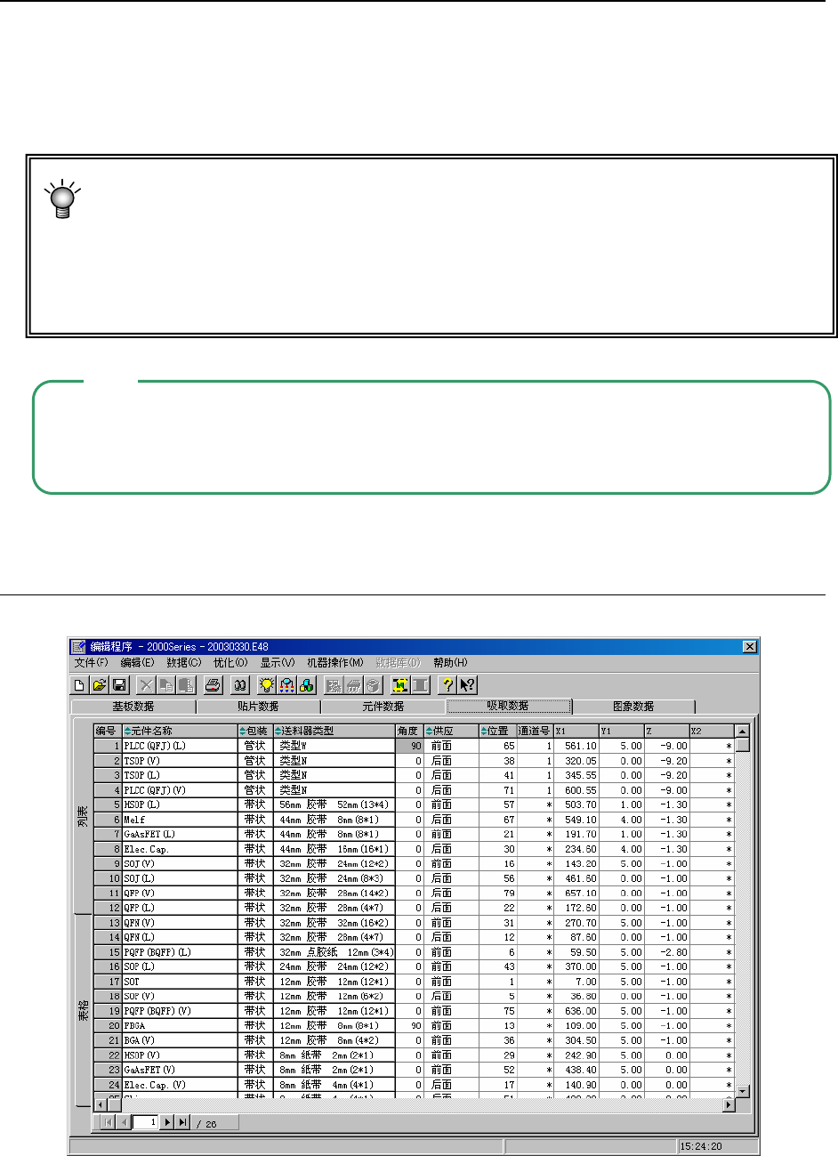 数据中的吸取坐标。因此,如果读入其他机种的生产程序时,务必再确认吸取坐标。