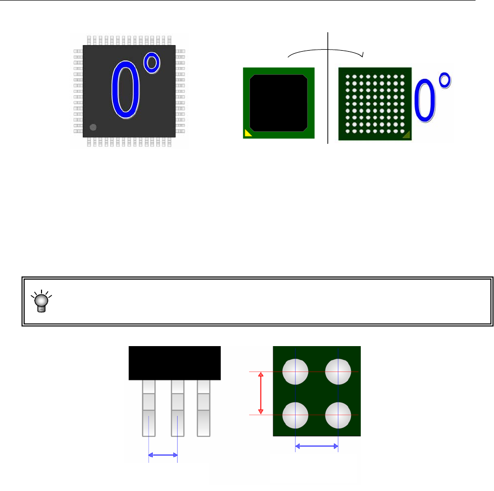 QFP、连接器等的引脚元件采用俯视图,BGA等球面元件采用仰视图来制作。
