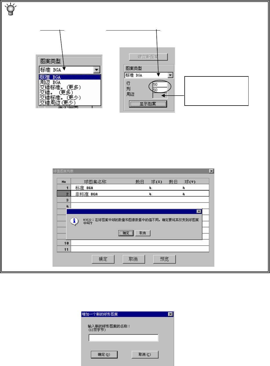 设置周边型BGA、交叉的周边型BGA(更多)、交叉的周边BGA(更少)球面图案时,要从周边开