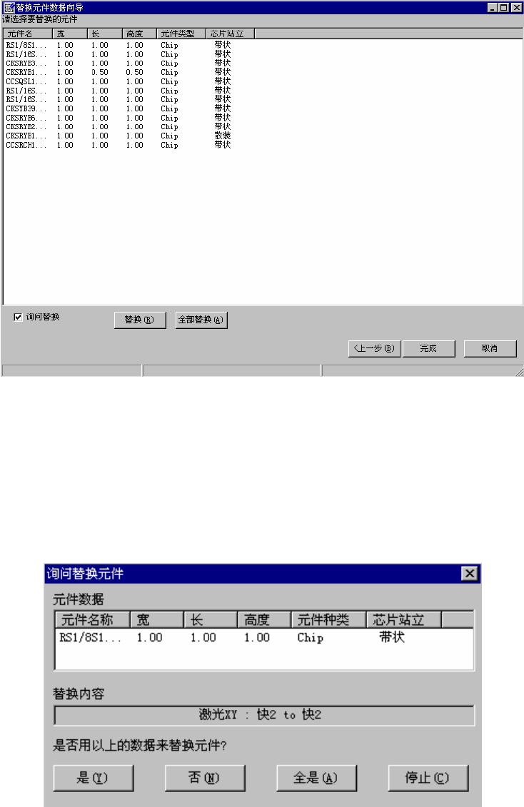 从编辑菜单中选择“替换”,启动如下的“替换元件数据向导”。