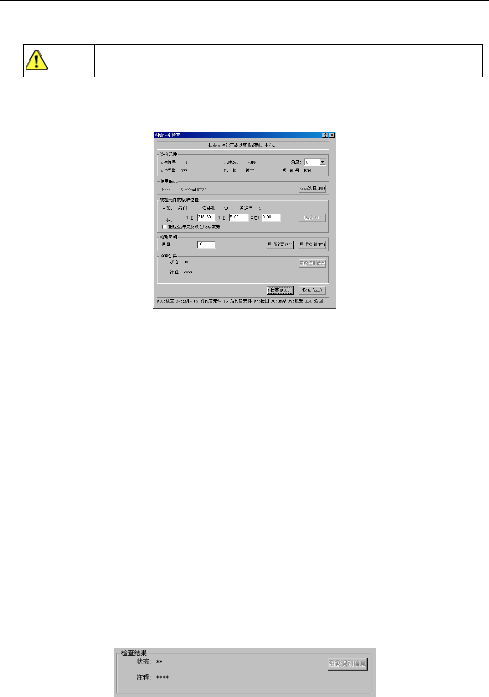 检查后,检查结果被显示在图像识别检查结果中。可进行图像定心时显示“OK”,不能