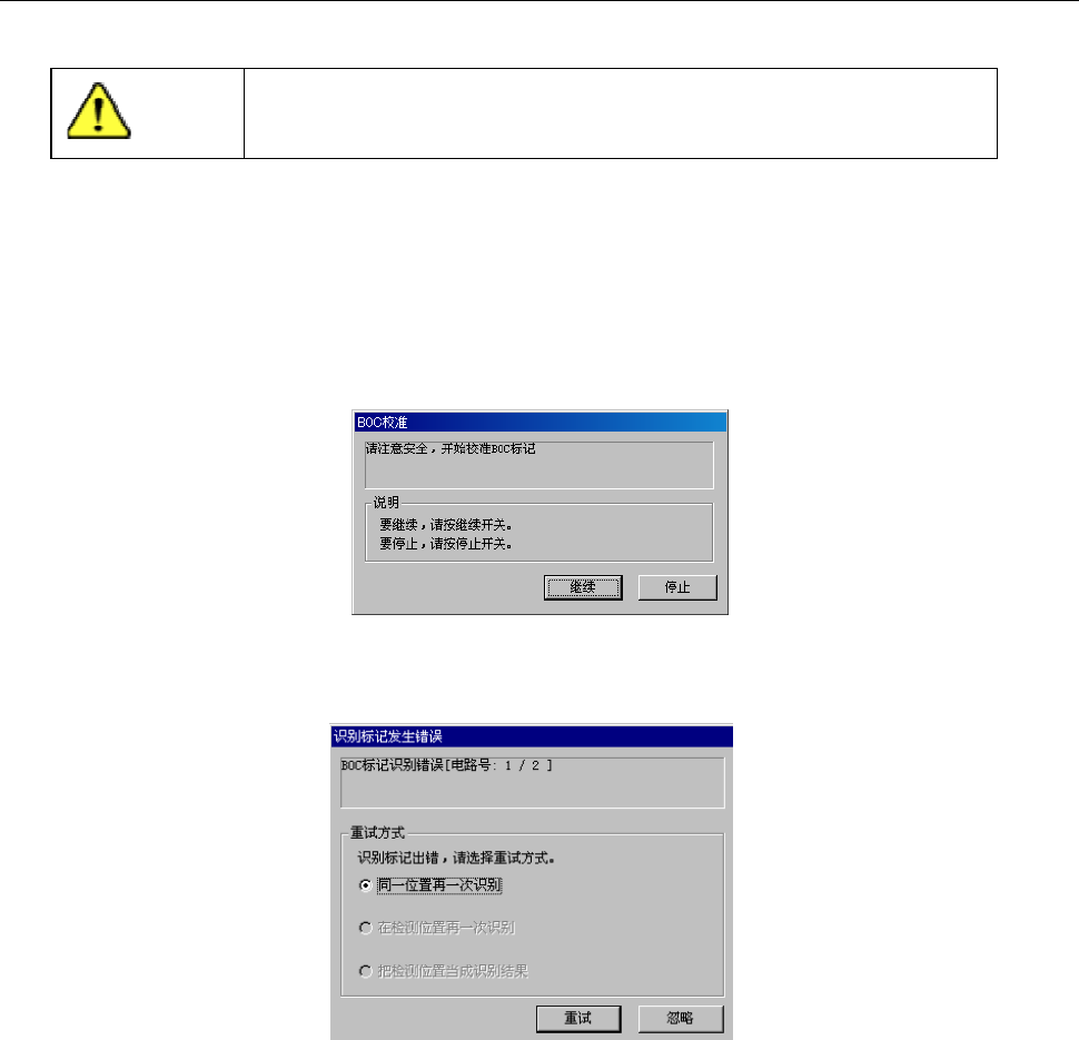 在进行时,若BOC标记识别失败(错误),则显示如下的选择画面。