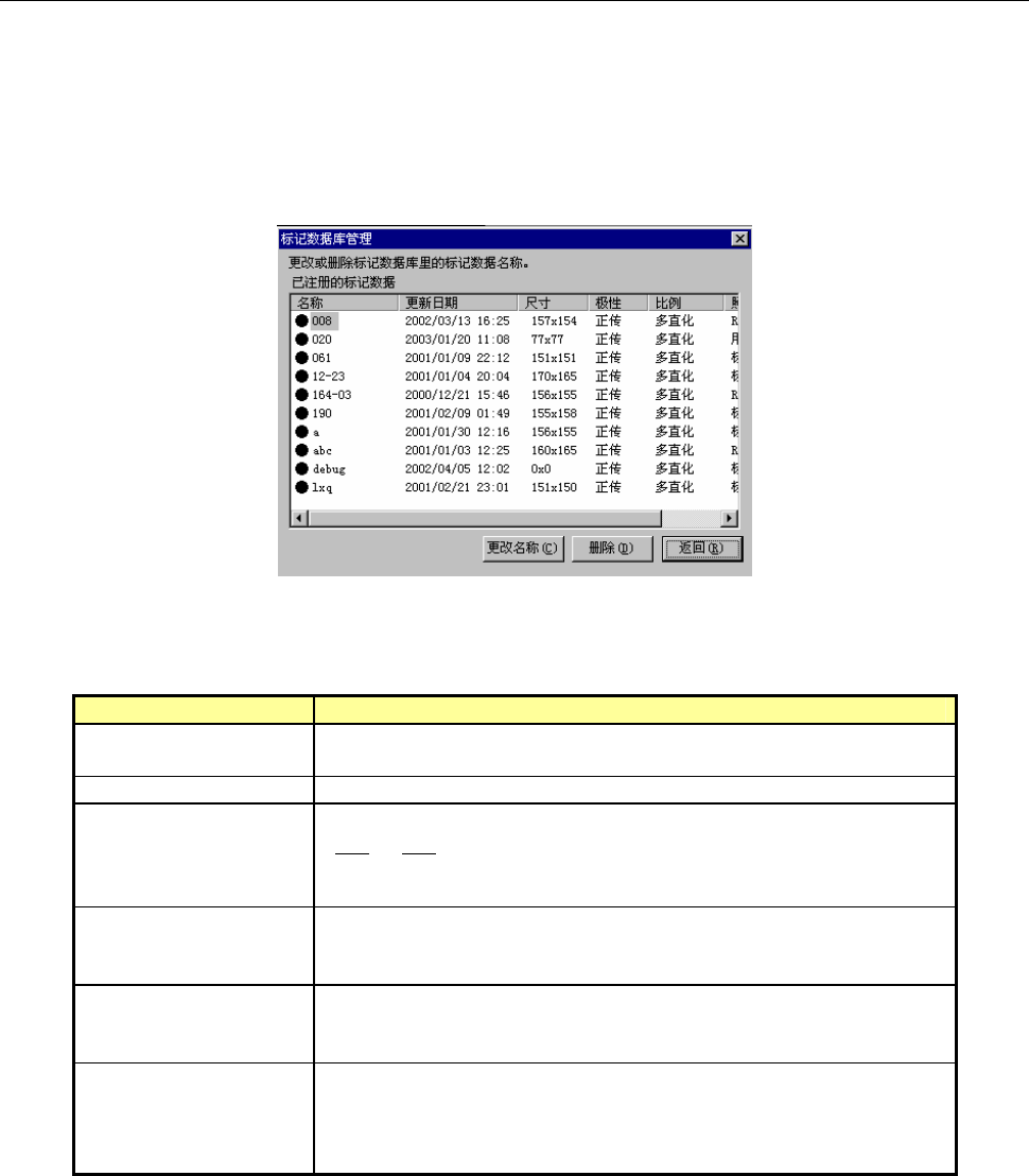 在列表中显示在数据库中储存的标记数据。各项目的含义如下。