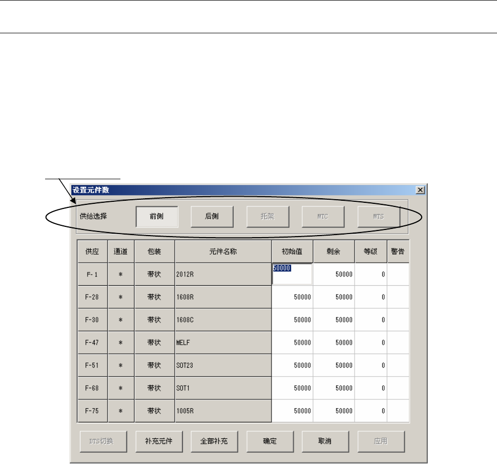 量进行设置,把送料器设定为“0”。此时,将不进行送料器元件剩余数量的管理。