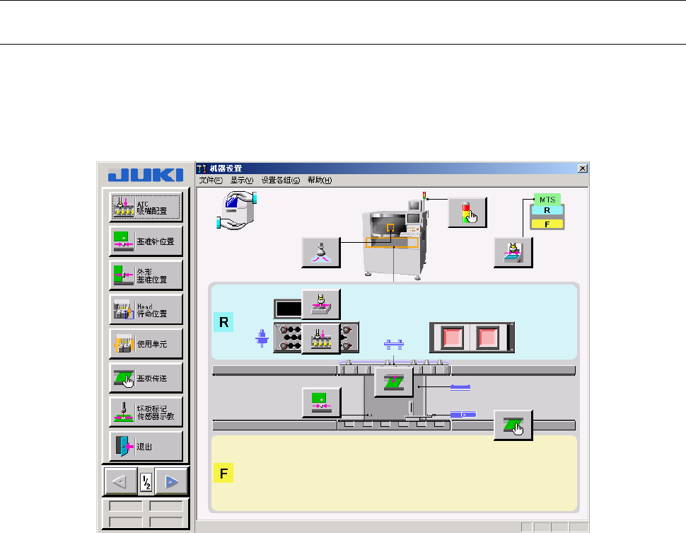 操作手册Ⅱ 4-51 4-4-2 机器设置的启动与退出 4-4-2-1 机器设置的启动 从菜单栏中选择“设置 ”/“机器设置”,或选 择触摸屏的“机器设置 ”,可显示如下列机 器设 置初始画面。 机器设置初始画面的左侧配置有触摸屏。 触摸屏上有常用的各设置组功能, 选择后可调出与各菜 单的相应功能。按下初始画面构成图上的按钮,即可启动与图对应的设置画面。 要变更各项目的设置时,请选择菜单栏上的“设置各组”。