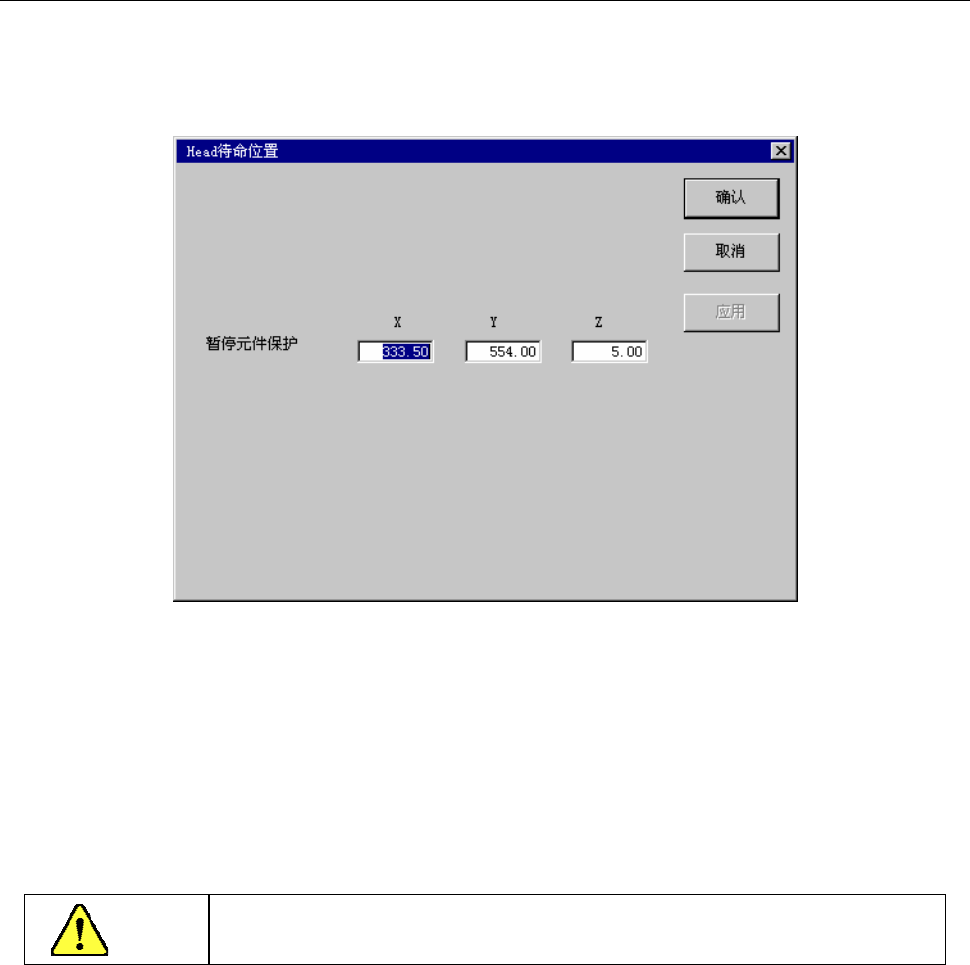 选择贴片头待命位置后,显示如下列贴片头待命位置设置画面。