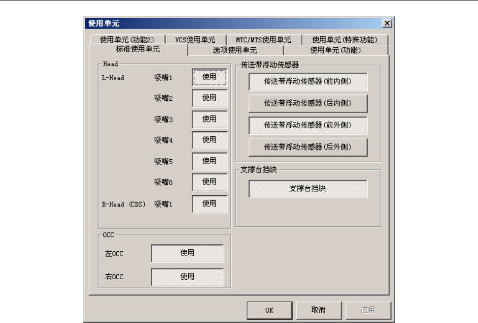 点击标签,指定“标准使用单元”、“选项使用单元”、“使用单元(功能)”、“VCS使用单元”、