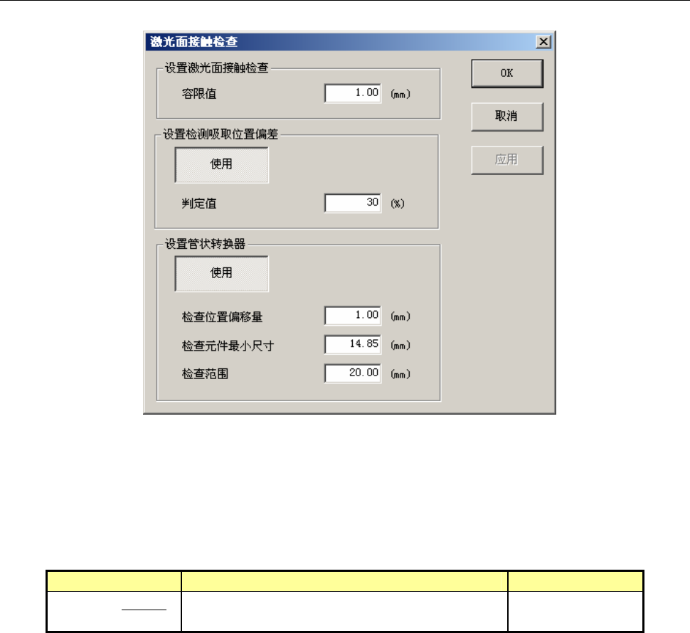 选择激光面接触检查后,显示下列激光面接触检查设置对话框。