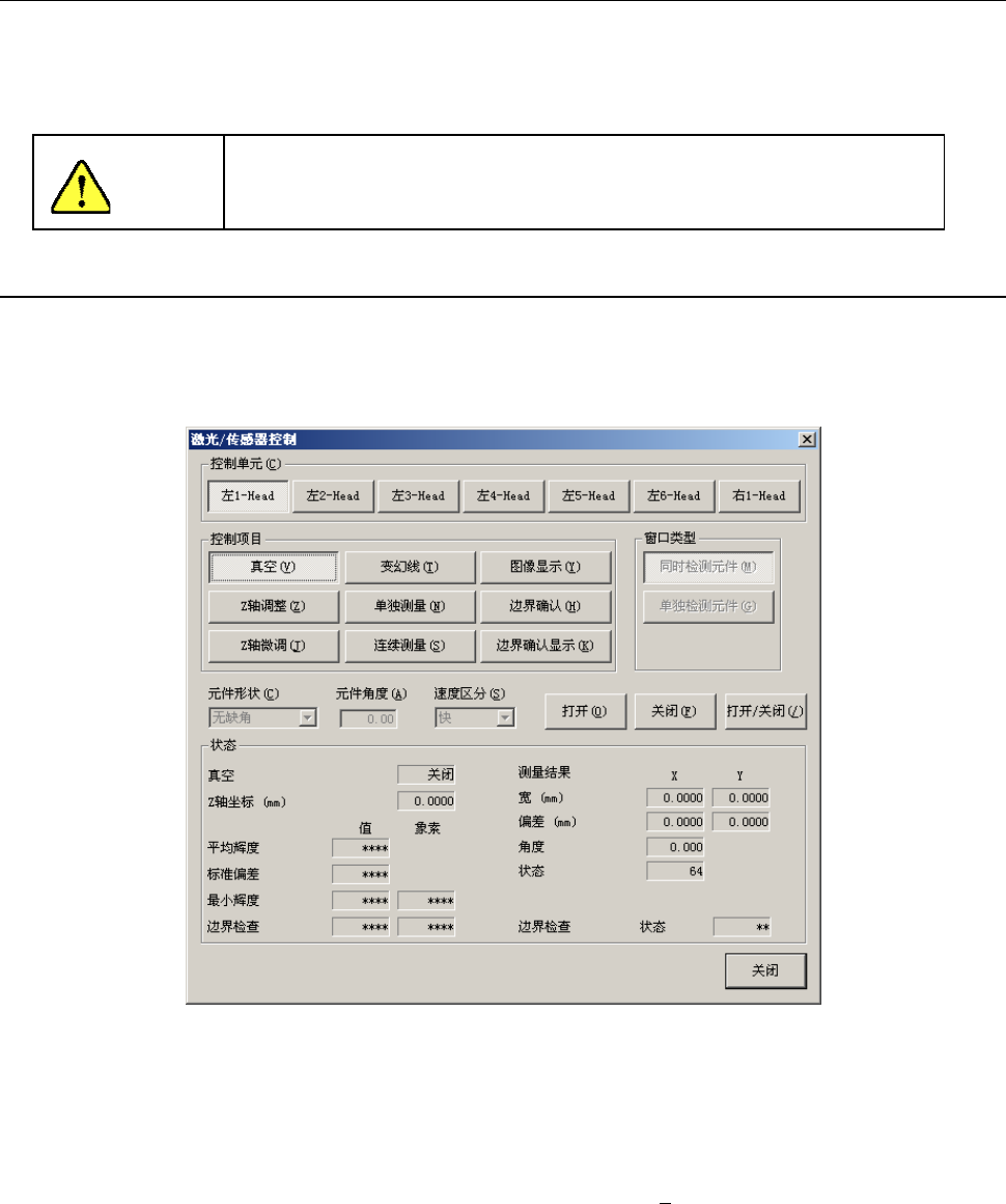 从菜单栏里选择 「控制」→「贴片头」→「激光/传感器控制」 ,显示出激光/传感器控制画面。